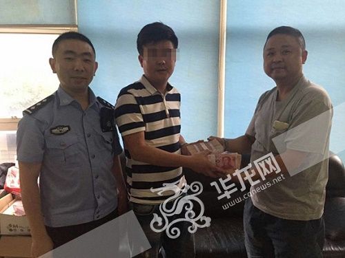 在派出所,警方通过杨斌核对失主身份,确认就是报警人就是失主,最终将财务进行了归还。而失主王先生也拿出1000元表示了酬谢。